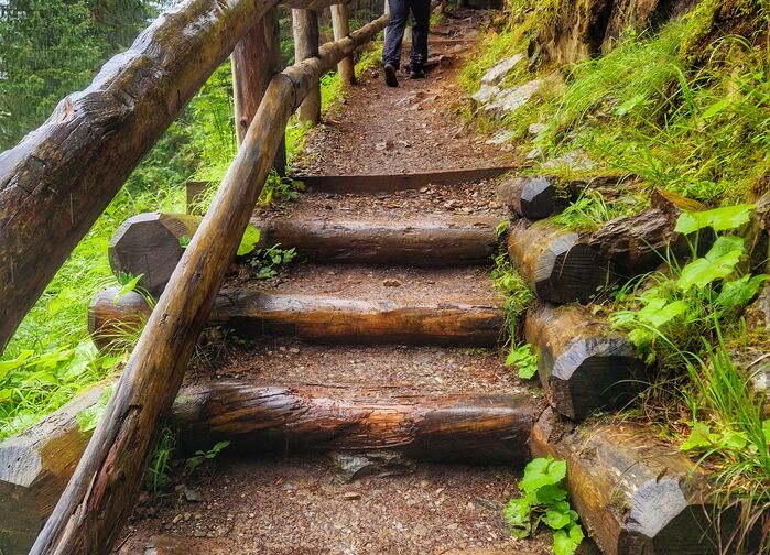 Dagens vandring: Vandring ca. 6–7 km. Underlag: skovstier, alpine enge og grus. Højdeforskel: ca. +230 m / –230 m. Samlet vandretid (ekskl. pauser): ca. 3–3,5 timer. Sværhedsgrad: middel (alternativ uden hængebro).