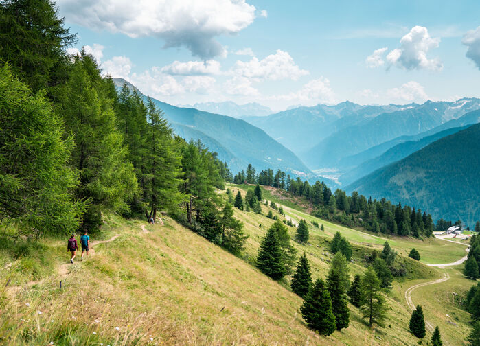 Vi forlader Dimaro og kører til Ossana, ca. 1 003 moh. Her ser vi den velbevarede borg San Michele, inden dagens vandring begynder. Stien følger Sentiero de la Lec gennem granskov mod Valpiana-dalen og videre til Malga Valpiana, hvor frokosten serveres med lokale specialiteter fra Trentino. Efter frokost vandrer vi ned til bussen og fortsætter til Pejo Fonti, hvor vi indkvarteres for resten af ugen. [F, L, M]