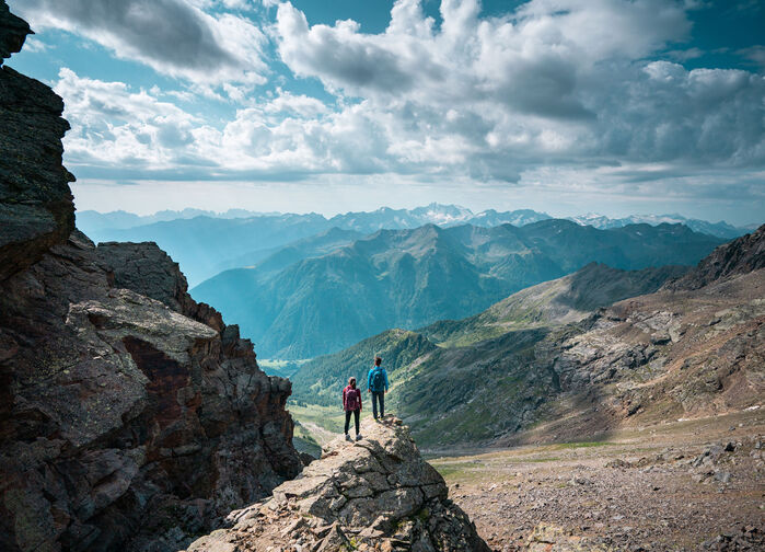Med bus kører vi til Passo Tonale og tager svævebane op til Passo Presena, ca. 3 000 moh. Her møder vi et højalpint landskab med gletsjere og vidtrækkende udsigter. Vandringen fortsætter ned mod Capanna Presena og videre til Galleria Paradiso, en tunnel fra Første Verdenskrig med udstilling om den såkaldte “hvide krig”. Herefter vandrer vi gennem alpine enge, hvor murmeldyr ofte ses. Dagen afsluttes med fælles frokost og retur til hotellet. Afskedsmiddag om aftenen. [F, L, M]