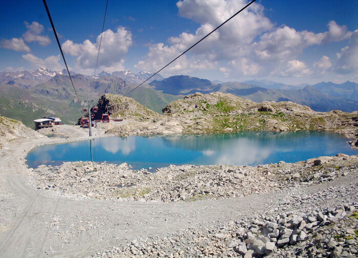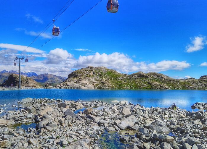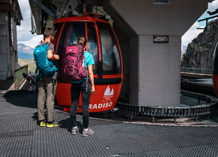 Bus til Passo del Tonale (1.884 m). Gondolbane til Passo Presena (3.000 m). Højdeforskel: +1.116 m, ca. 30 minutter. Svævebane til Capanna Presena (2.738 m) og gåtur til Galleria Paradiso (2.600 m). Højdeforskel: -138 m, ca. 30 minutter. Gondolbane tilbage til Passo del Tonale + stolelift til Malga Valbiolo (2.244 m), vandring tilbage til Passo del Tonale, højdeforskel: -360 m, ca. 60 minutter. Bus til Pejo Fonti. Morgenmad, frokost og afskedsmiddag inkluderet. (M, F, A)
