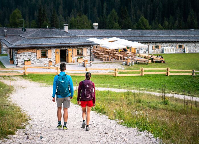 Med svævebane tager vi op til Tarlenta, udgangspunkt for dagens vandring i Stelvio nationalpark. Efter et kort stop ved fjeldhytten Lo Scoiattolo fortsætter vi ad Via dei Monti gennem nåleskov og ned mod Lago Covel og Rio Vioz-vandfaldet, hvor vi spiser picnicfrokost. Herefter vandrer vi videre til Pejo Paese og besøger en familiedrevet gård med smagsprøver på ost, speck og vin. Den sidste strækning går vi til fods tilbage til hotellet. Aftenen er fri. [F, L]