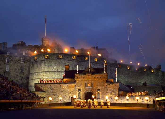Om aftenen mødes vi igen for at tage til Edinburgh Castle og borgens gård. Det er tid til The Royal Military Tattoo. Sækkepiber, trommer og fanfarer fra fem militærenheder. Dans, humor og et rigtigt festfyrværkeri er også en del af denne spektakulære aften. Et af de varige indtryk er dog normalt den mere stille optræden af The Lone Piper.